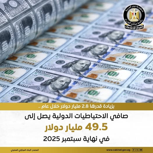 صافي الاحتياطيات الدولية يسجل مستوى قياسيًا جديدًا بـ49.5 مليار دولار في سبتمبر 2025